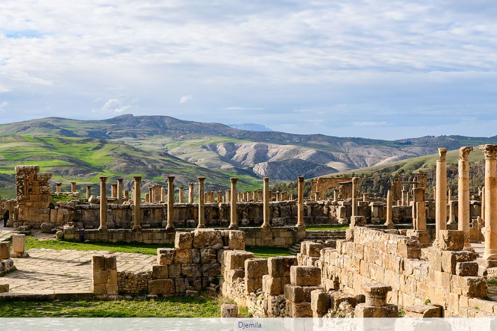Départ tôt vers le parc archéologique de "Djemila", anciennement Cuicul, situé à 50 km au nord de Sétif. Classé par l’UNESCO au patrimoine mondial, c'est à la fois l'un des fleurons de l'architecture romaine en Afrique du Nord et l'un des plus beaux ensembles de ruines romaines au monde. Djemila apporte un témoignage exceptionnel sur une civilisation disparue. La valeur patrimoniale du site repose notamment sur ses vestiges archéologiques, son plan d'urbanisme romain bien intégré et son cadre environnemental. Vous y découvrirez l’Arc de Caracalla, les grands thermes, le théâtre de 3 000 places, la basilique chrétienne, le musée et ses magnifiques tableaux de mosaïques ainsi que le baptistère du 4e siècle. Déjeuner dans un restaurant proche du site.