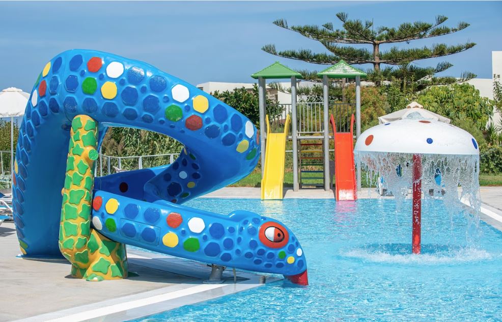 1 piscine dédiée aux enfants de 4 à 6 ans, avec 3 toboggans pour les petits. Ouverture de 10h à 13h30 et 14h à 18h, selon météo et remplissage de l'hôtel.